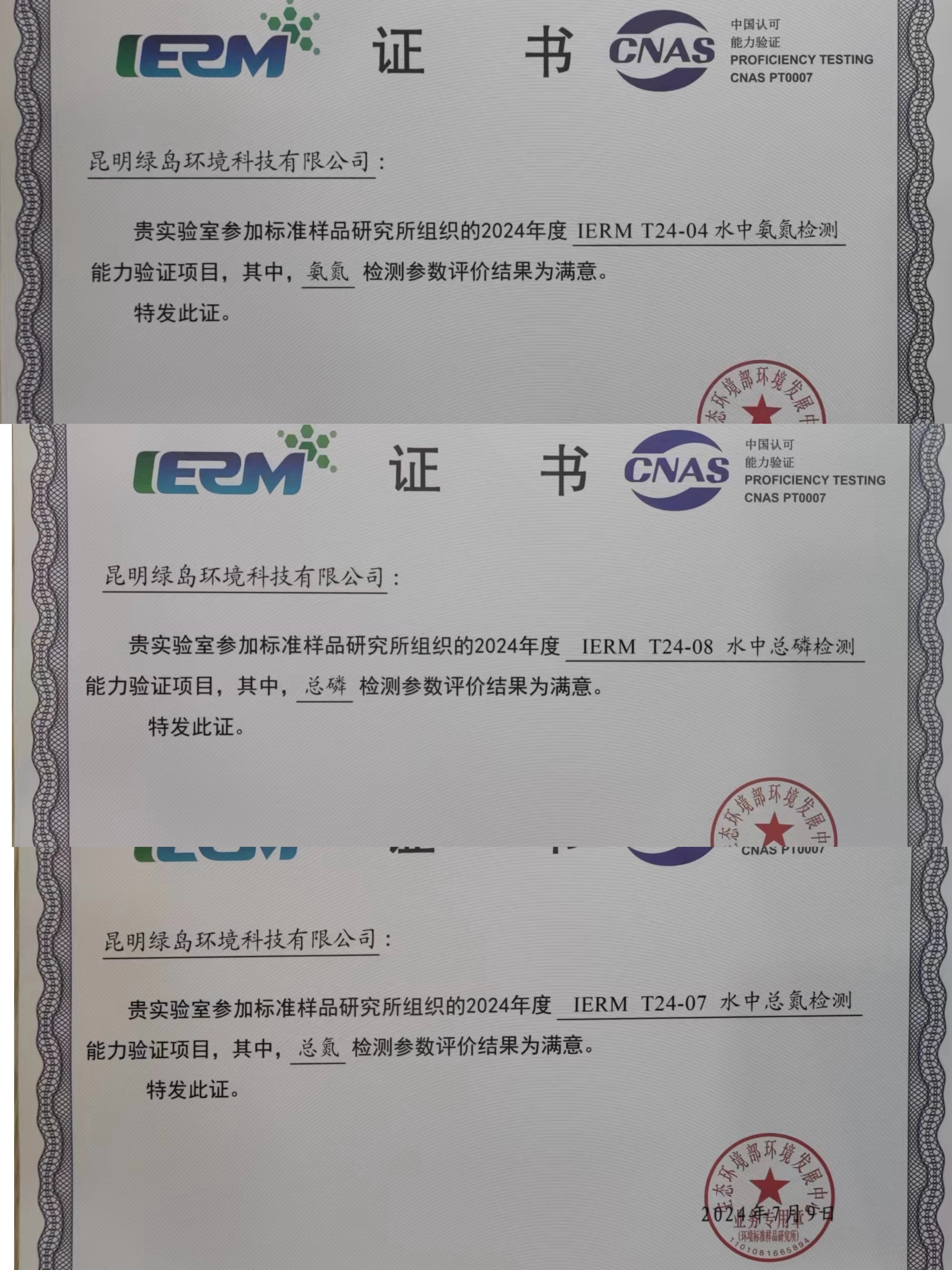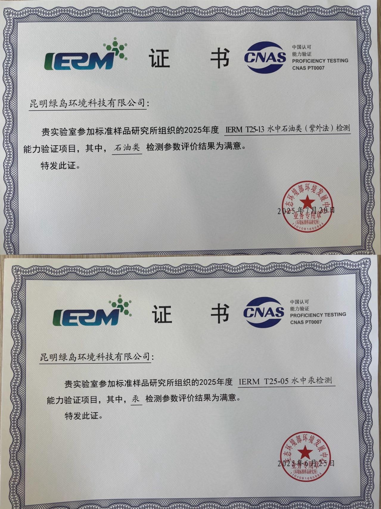 強化能力建設 夯實發(fā)展根基(五) ——昆明綠島環(huán)境科技有限公司喜獲2項能力驗證證書